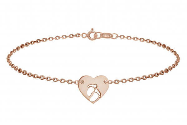 Tento nádherný náramok MYBABY je vyrobený z ružového zlata s rýdzosťou 14 karátov. V medailóniku v tvare srdca sú umiestnené dve malé detské nôžky. Môže byť skvelým darčekom pre mamičky, ktorým ukáže, ako sú nesmierne hrdé a vďačné za narodenie bábätka.