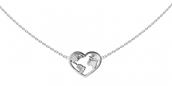 STRIEBORNÁ RETIAZKA MAPA SVETA V SRDCI