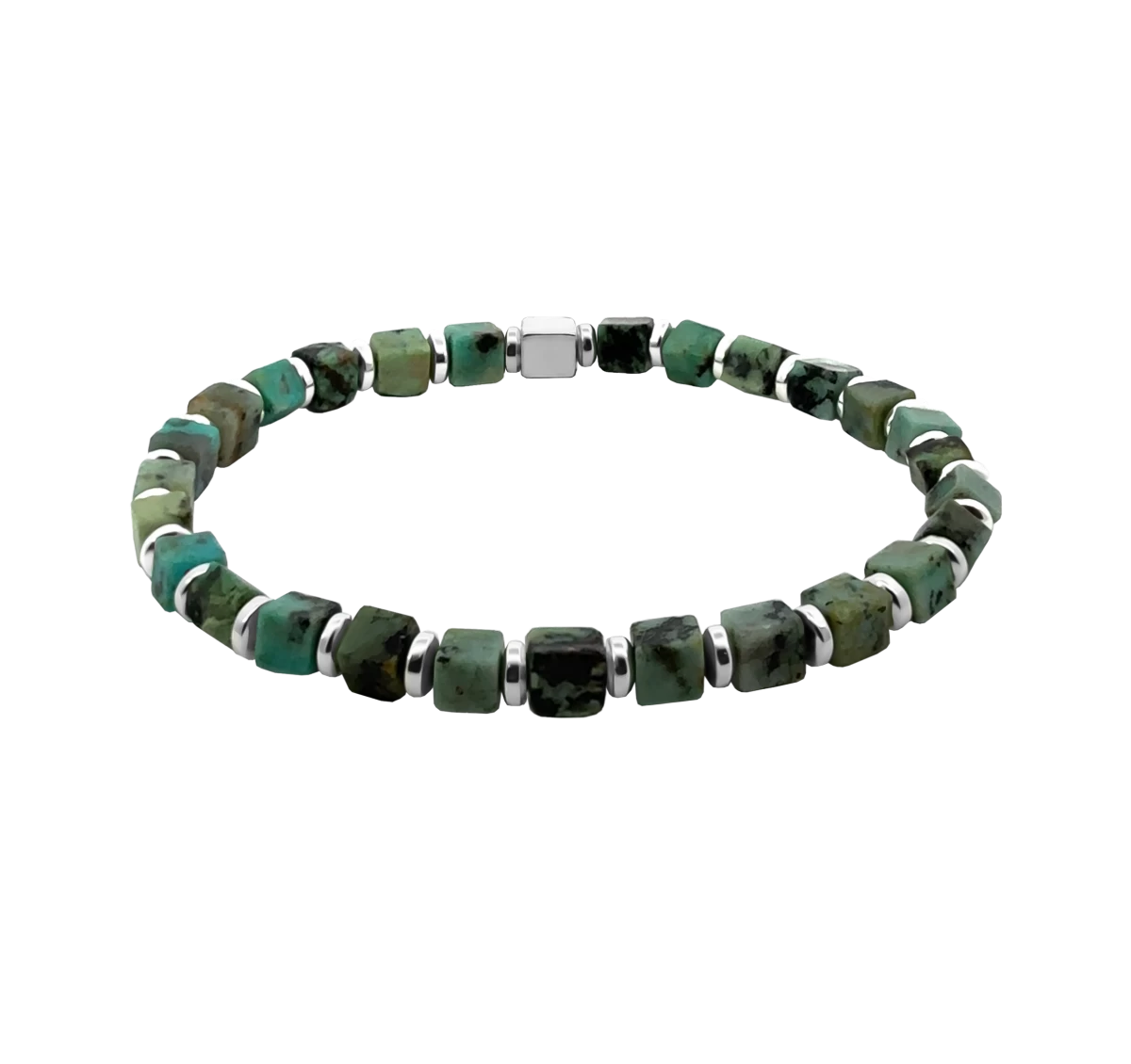 Elegantný pánsky náramok ZILIA z drobných kociek afrického tyrkysu s hematitovými detailmi a výraznou kockou zo striebra 925. Tradične sa spája s uvoľnením stresu, vnútornou rovnováhou a posilnením sebavedomia i osobnej odvahy na každý deň.