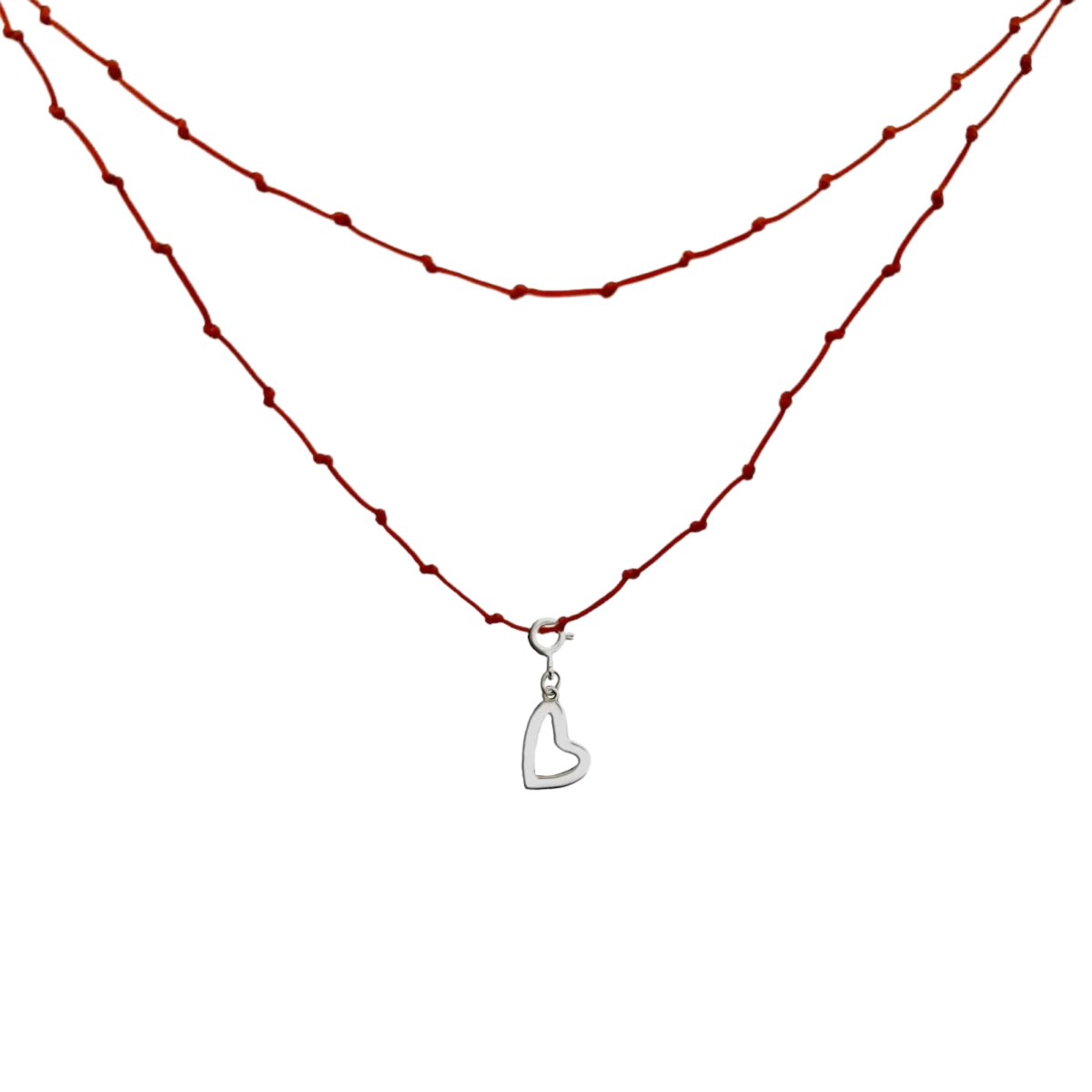 Dlhý náhrdelník s uzlami na šnúrke s farebným príveskom v tvare srdca a strieborným zapínaním