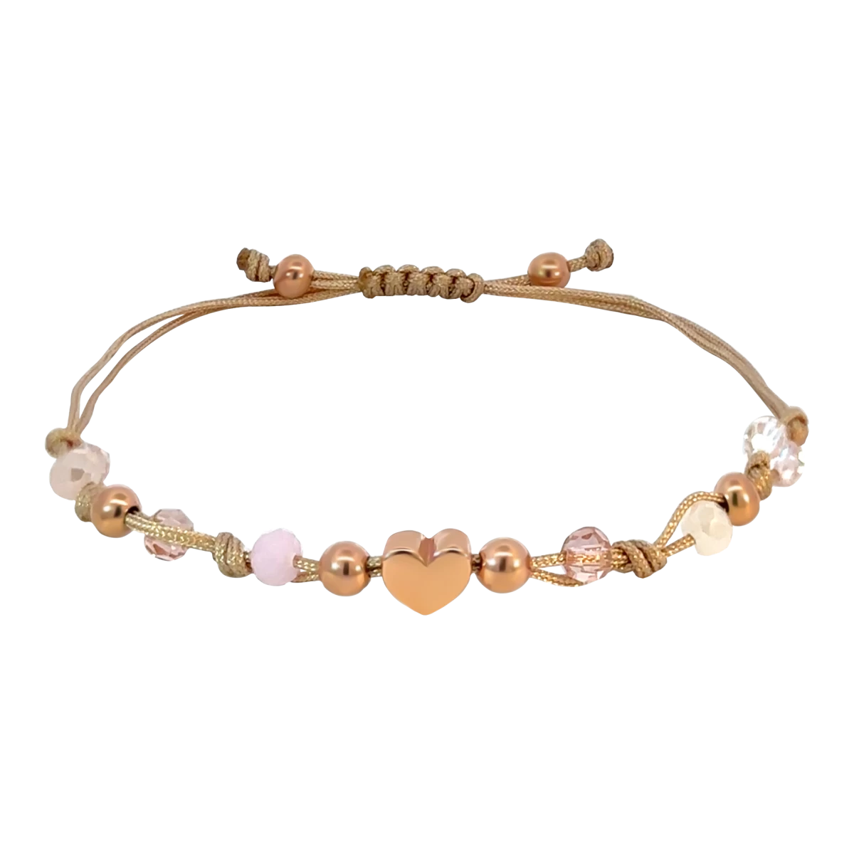 ZILIA náramok na členok z farebných kryštálov so srdiečkom zo striebra 925 s ružovým zlatom. Nastaviteľné makramé pre pohodlie. Moderný talizman energie na bežné dni aj slávnostné chvíle. Skvelý darček.