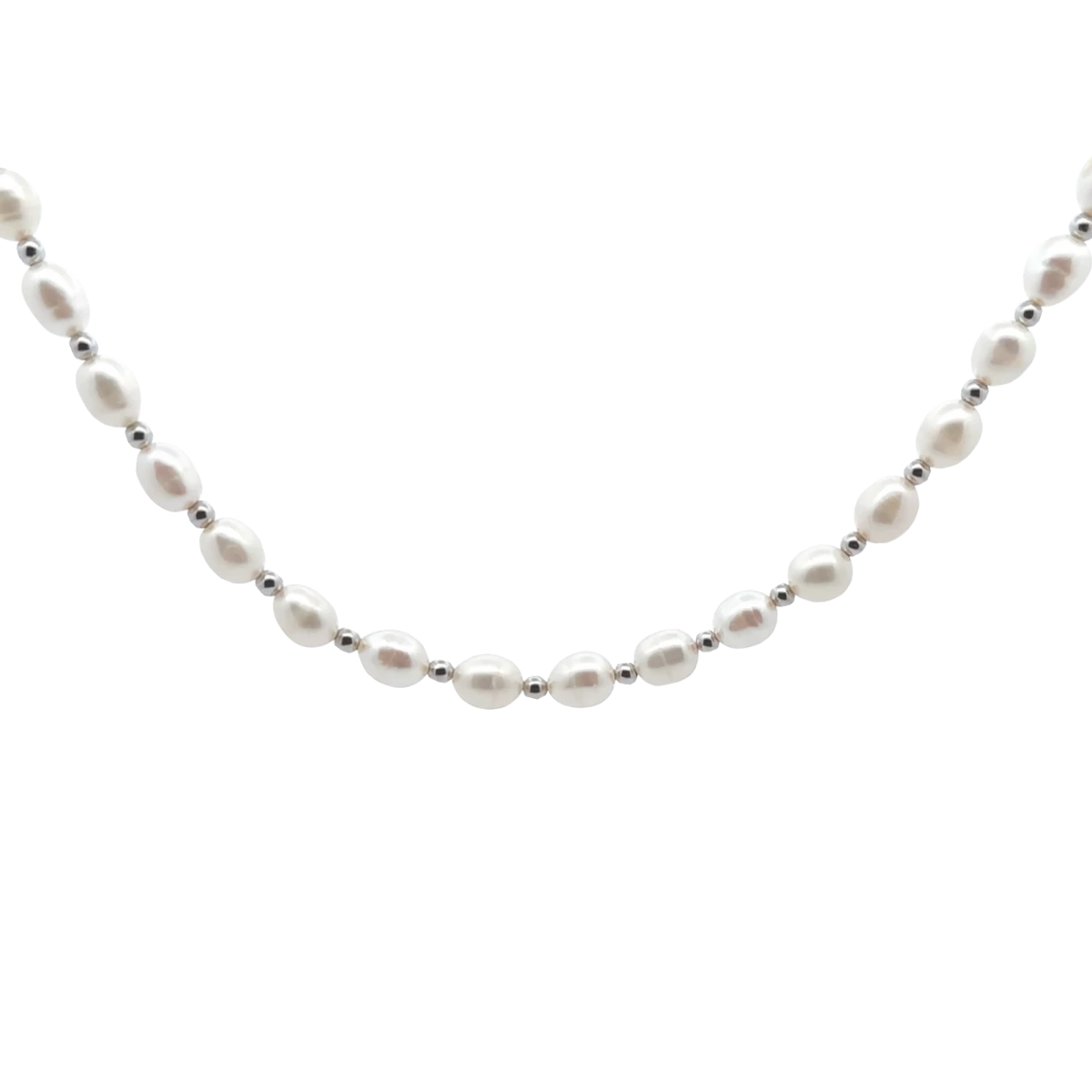 Náš náhrdelník, vyrobený z väčších perál v tvare ryžových zŕn, je dokonalou ozdobou nielen na špeciálne príležitosti, ale aj na každodenné nosenie. Stelesňuje harmóniu nadčasovej elegancie a moderného dizajnu. Tento krásny kúsok šperku nie je len doplnkom, ale aj vyjadrením štýlu, ktorý zvýrazňuje jedinečnú krásu a eleganciu svojej nositeľky.