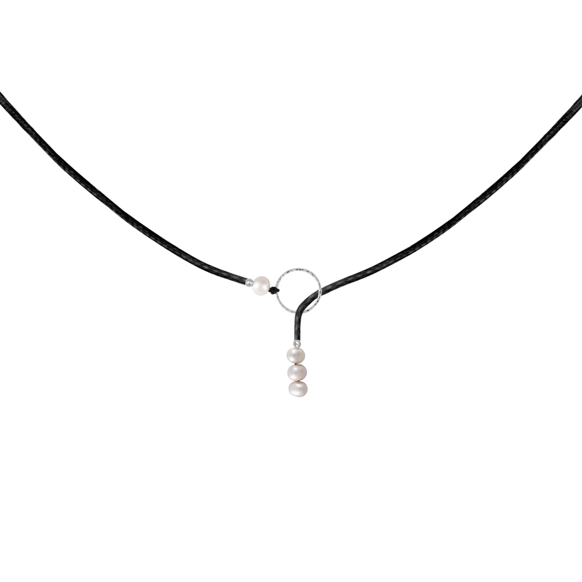 Náhrdelník so slučkou a bielou riečnou perlou na šnúrke, 925 striebro
