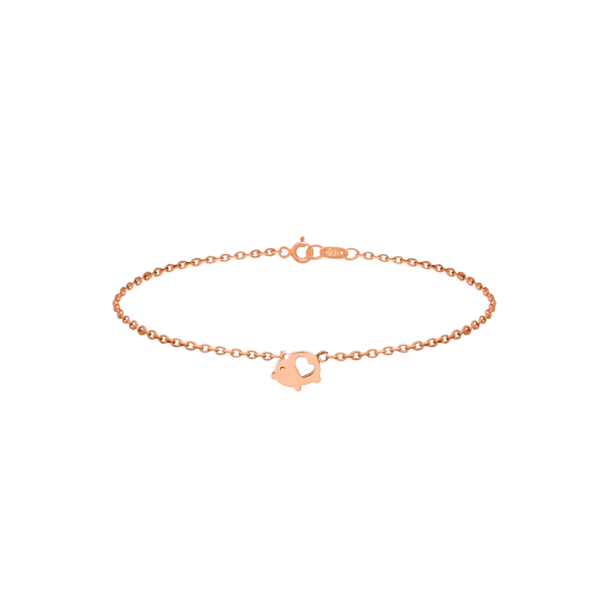 Náramok s ružovo-zlatým prasiatkom z 14K zlata