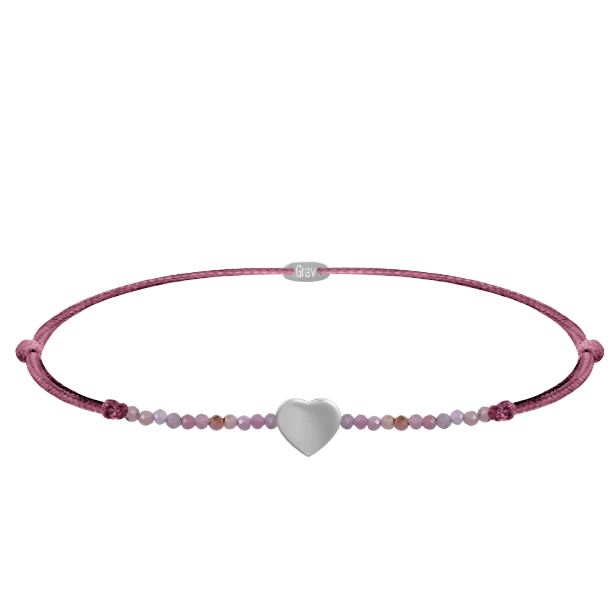 Náramok srdce s prírodnými fialovými kryštálmi striebro