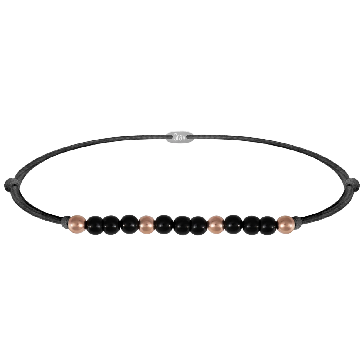 Náramok z minerálu čierneho onyxu a korálok s povrchovou úpravou z ružového zlata, striebro 925