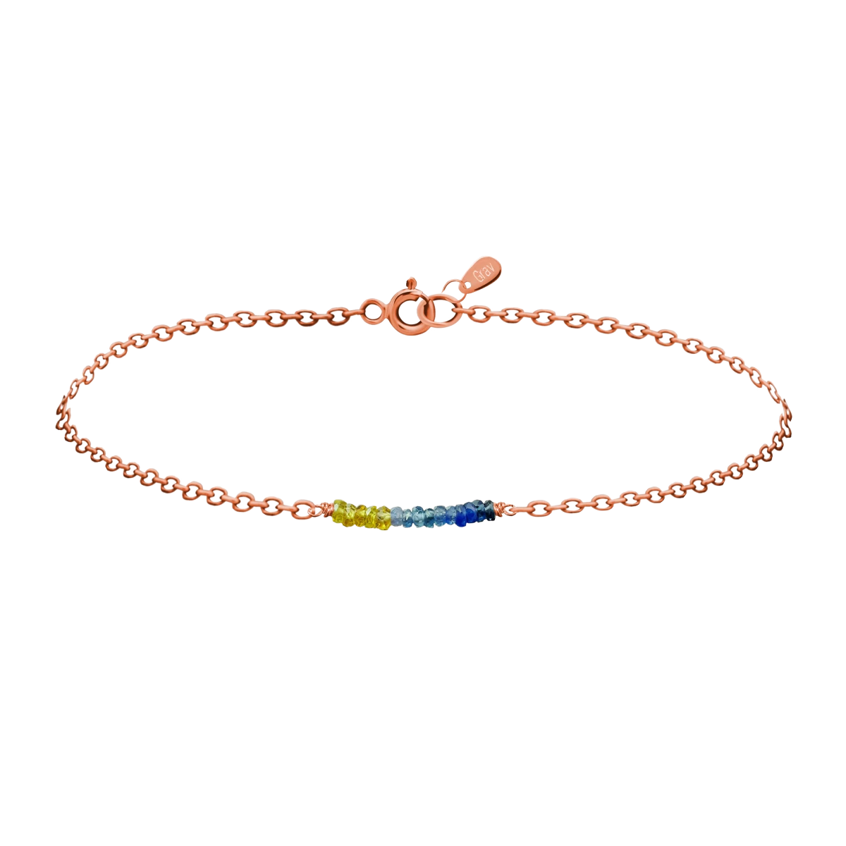 Náramok z ružového 14K zlata so žltým a modrým zafírom