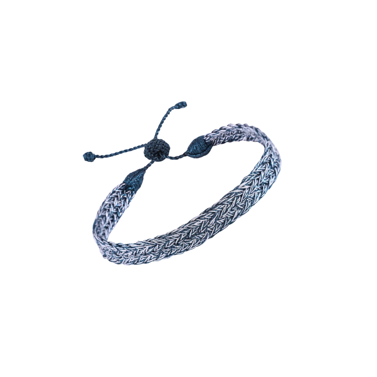 Ručne tkaný pánsky náramok ZILIA spája hlbokú stredomorskú modrú s marockou technikou Sfifa. Kontrast strieborných a tmavomodrých vlákien vyžaruje silu, sebavedomie a modernú eleganciu. Nadčasový a všestranný doplnok pre muža, ktorý ctí tradíciu a preferuje čistý mestský štýl.