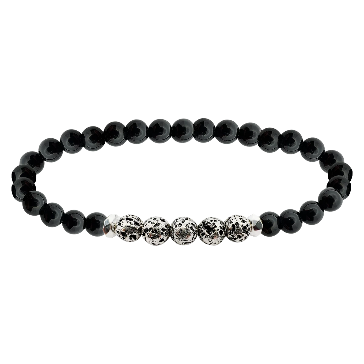 Náramok z čierneho ónyxu a lávového kameňa so striebornými 925 prvkami