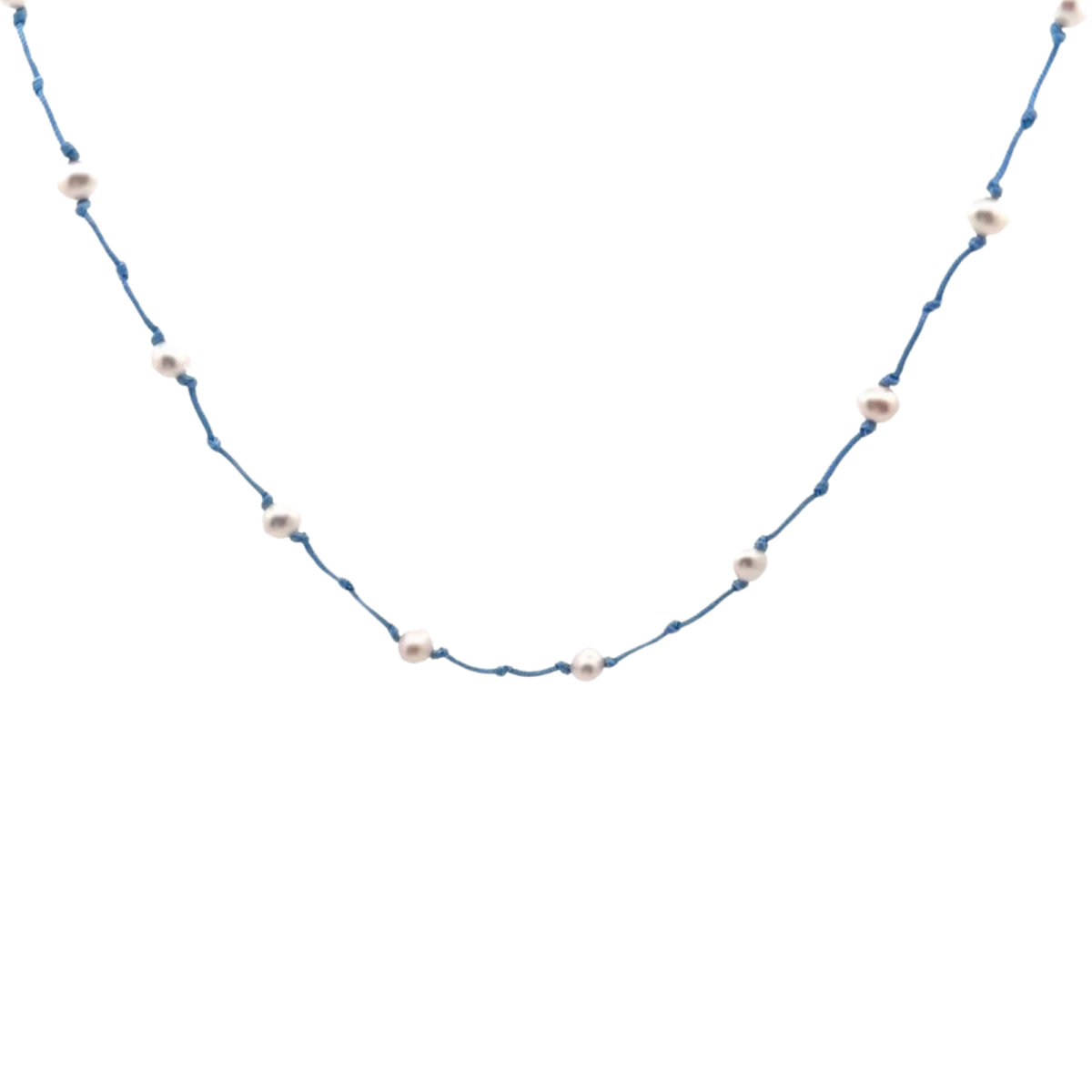Ručne viazaný náhrdelník navlečený na farebnom pevnom vlákne, s 15 sladkovodnými perlami, strieborným 925 zapínaním. Priprav sa na leto s nami, užívajte si slnečné lúče a predveďte svoj nový, módny náhrdelník, ktorý môžete skombinovať s viazaným náramkom alebo náramkom na členok - aj v inej farbe!