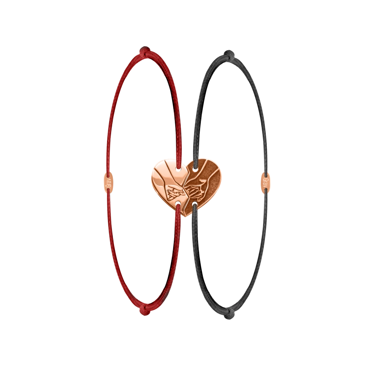 Noste na svojom zápästí jedinečný náramok z jemnej šnúrky s príveskom v tvare srdca, ktorý zobrazuje sľub malíčkom. Tento šperk je dokonalým symbolom hlbokého priateľstva alebo lásky, keď druhý náramok nosí vaša blízka osoba. Vyberte si veľkosť a farbu šnúrky podľa svojich predstáv a uveďte ich v poznámke k objednávke. Ideálny darček na vyjadrenie vzájomného puta.