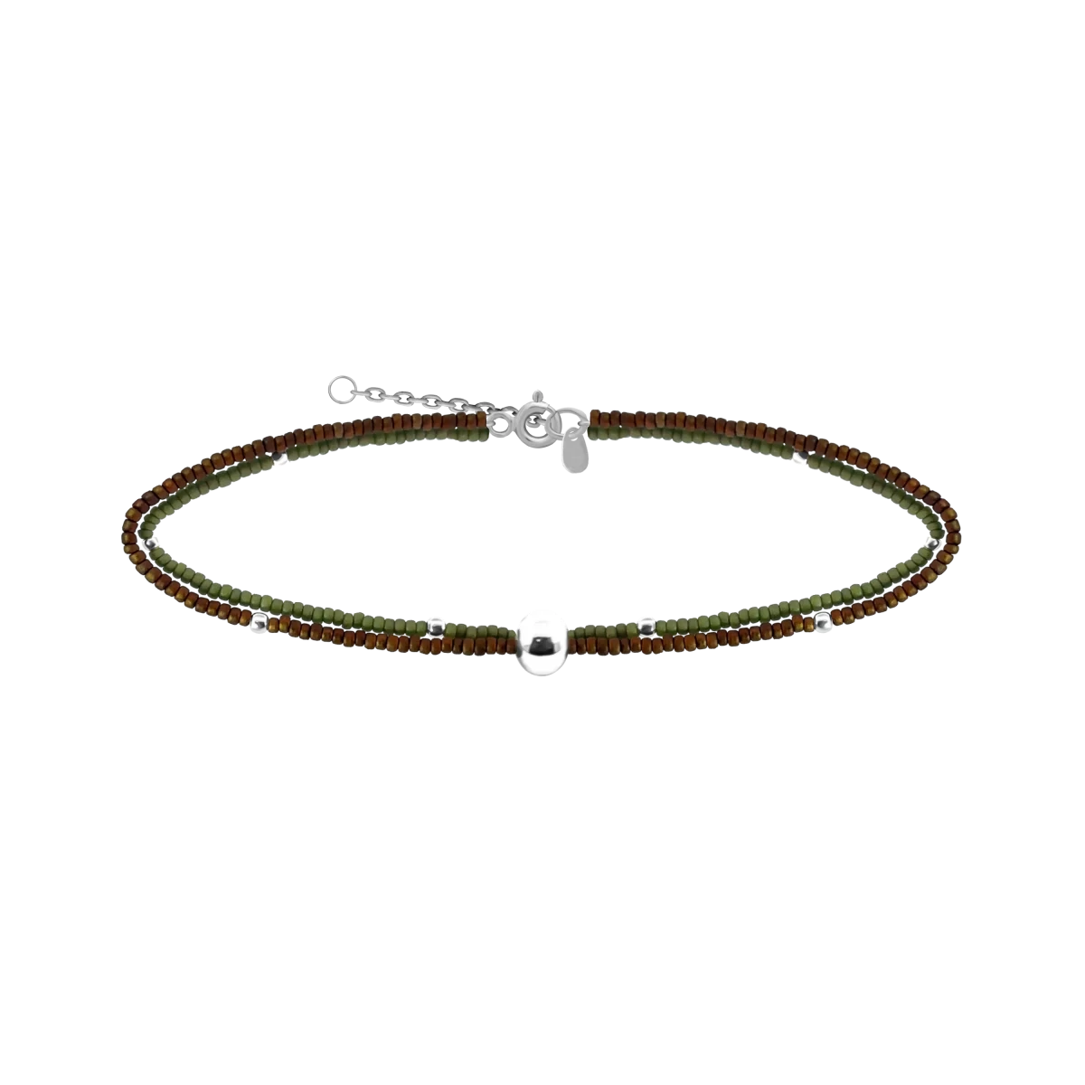ZILIA náramok v jesenných odtieňoch spája zelené a hnedé rokajlové koráliky s lesklými striebornými akcentmi pre moderný a mladistvý vzhľad. Nastaviteľná retiazka zaručí pohodlné prispôsobenie, takže vynikne pri ležérnom outfite aj elegantnom večernom štýle.