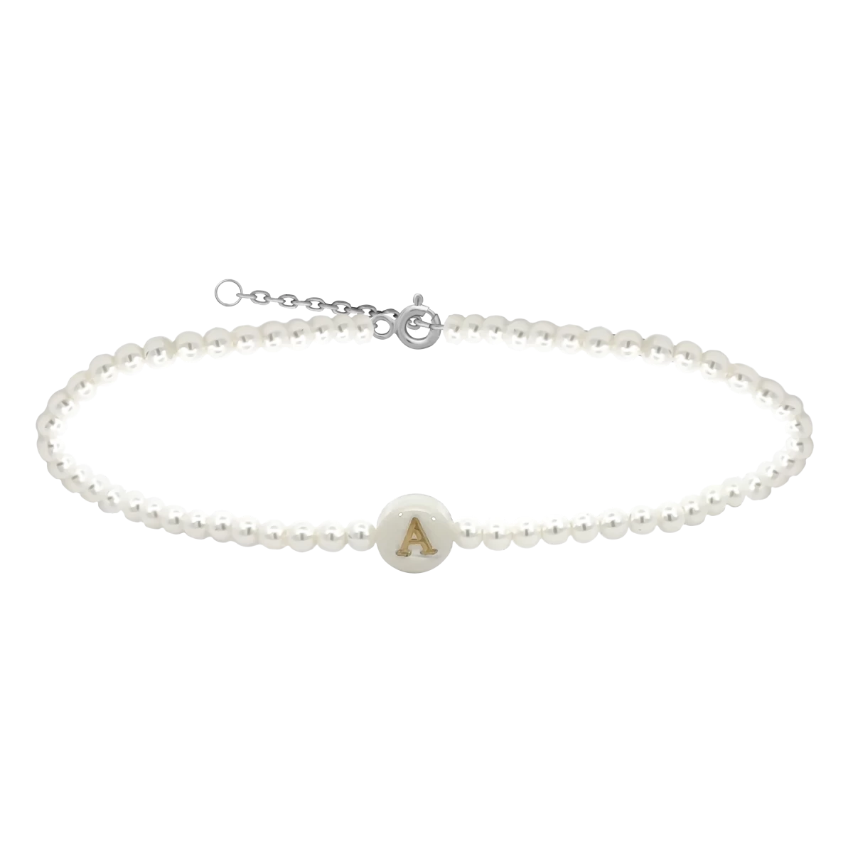 ZILIA Pearl Letter Abc Strieborný členkový náramok
