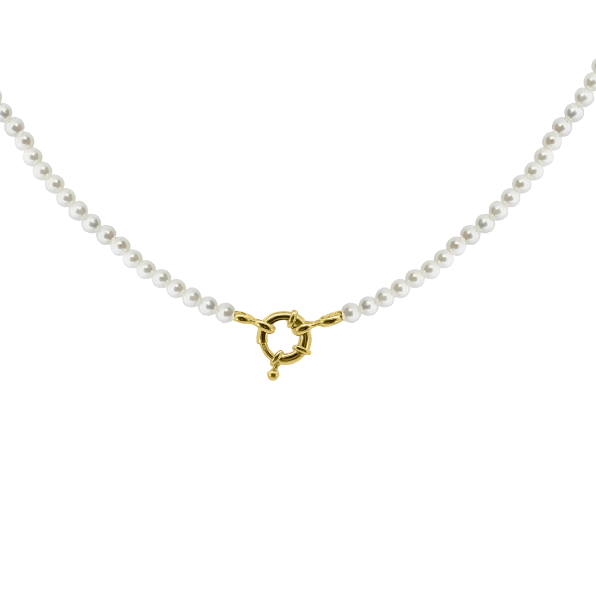 Elegantný náhrdelník spája prírodný pôvab perál s moderným dizajnom. Výrazné perly a nápadné zapínanie s povrchovou úpravou z 18-karátového žltého zlata na striebre robia tento šperk ideálnou voľbou pre tých, ktorí chcú vyniknúť a podčiarknuť svoj jedinečný štýl.