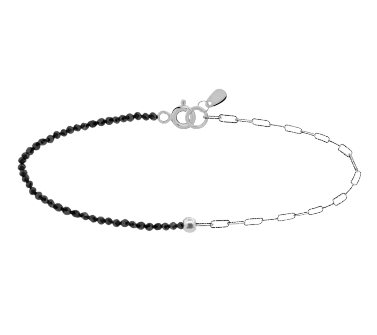 V tomto šperku sa stretol drahý kov s minerálom. Povrch oválnych článkov retiazky je výrazný, odlišný od klasických retiazok. Veľkosť článkov retiazky: 3 x 7,5 mm. Spinelový náramok očarí každého svojou zvláštnou krásou. Nie je len krásny, ale je aj minerál s liečivými účinkami. Spinel zvýrazňuje pozitívne stránky osobnosti. Posilňuje sebavedomie a pomáha dosiahnuť úspech.