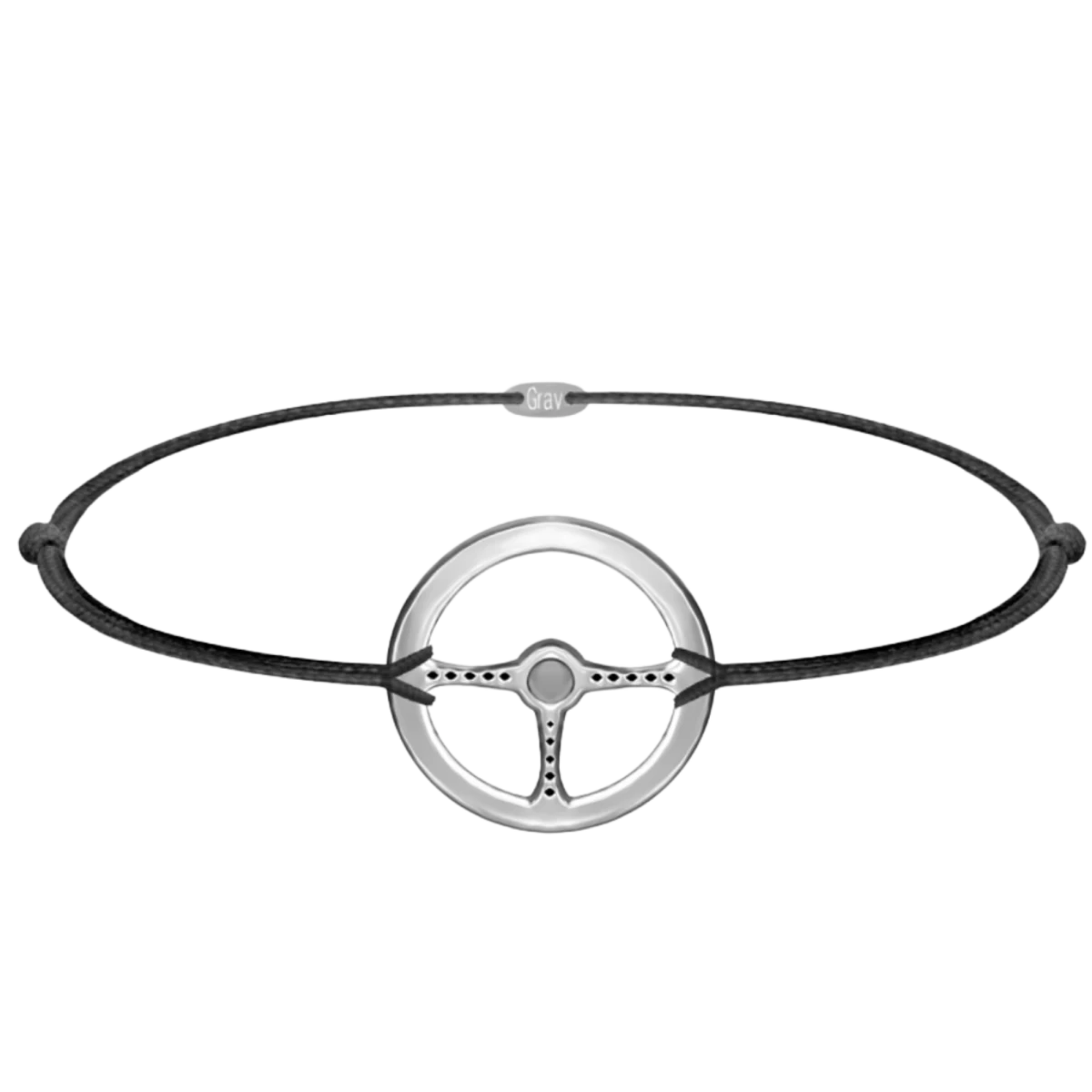 Strieborný náramok s čiernou šnúrkou a motívom kolesa pre mužov