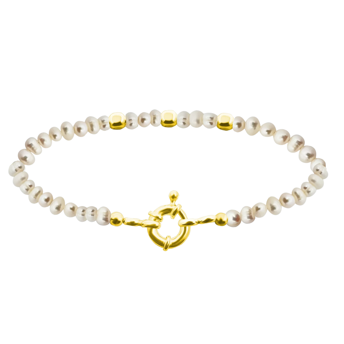 Strieborný náramok s bielymi sladkovodnými perlami s pozlátenými prvkami