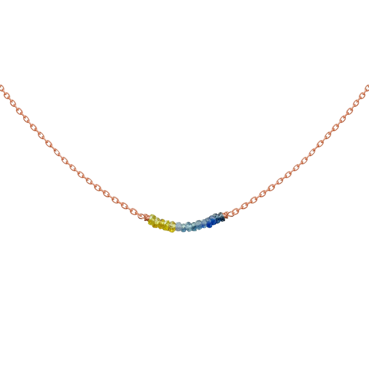 Retiazka s ružového 14K zlata so žltým a modrým zafírom
